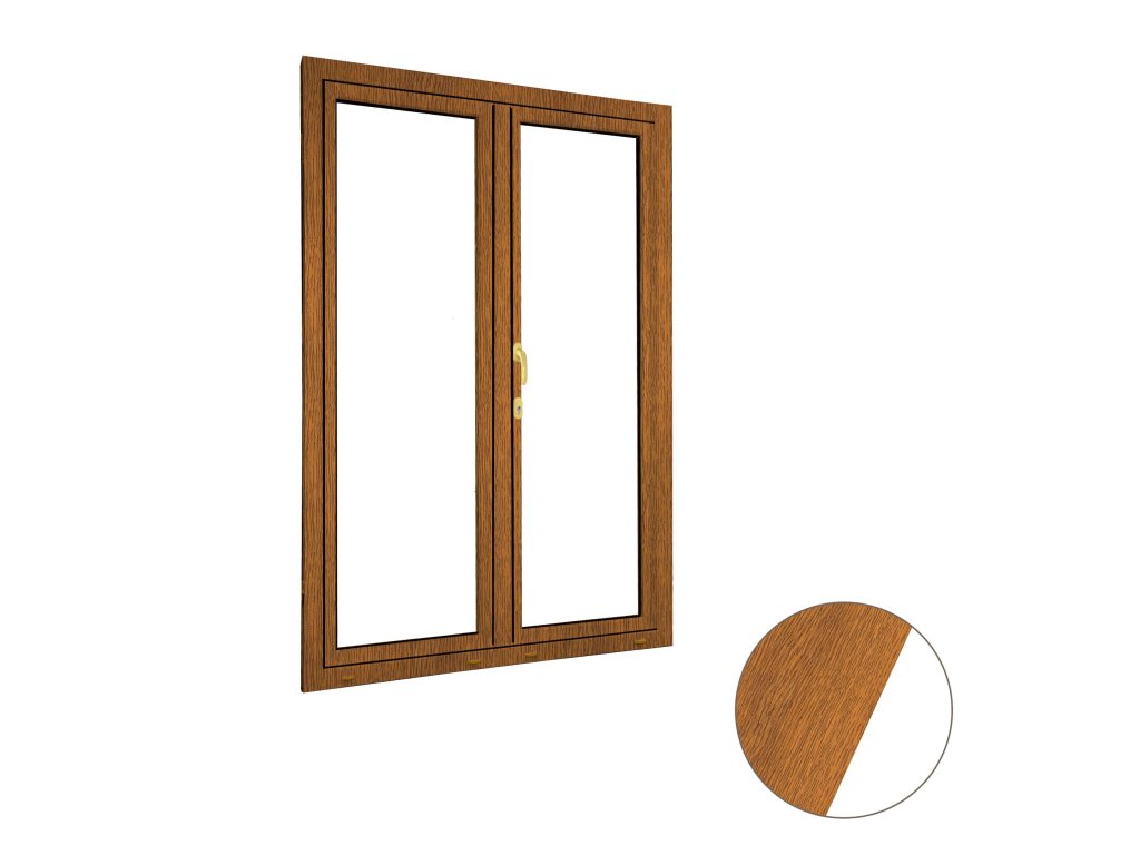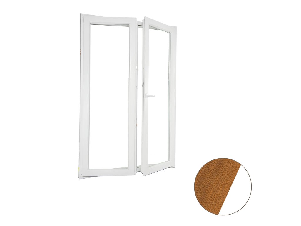 Plastové dvoukřídlé balkonové dveře s oboustrannou klikou zlatý dub/bílé 130x200