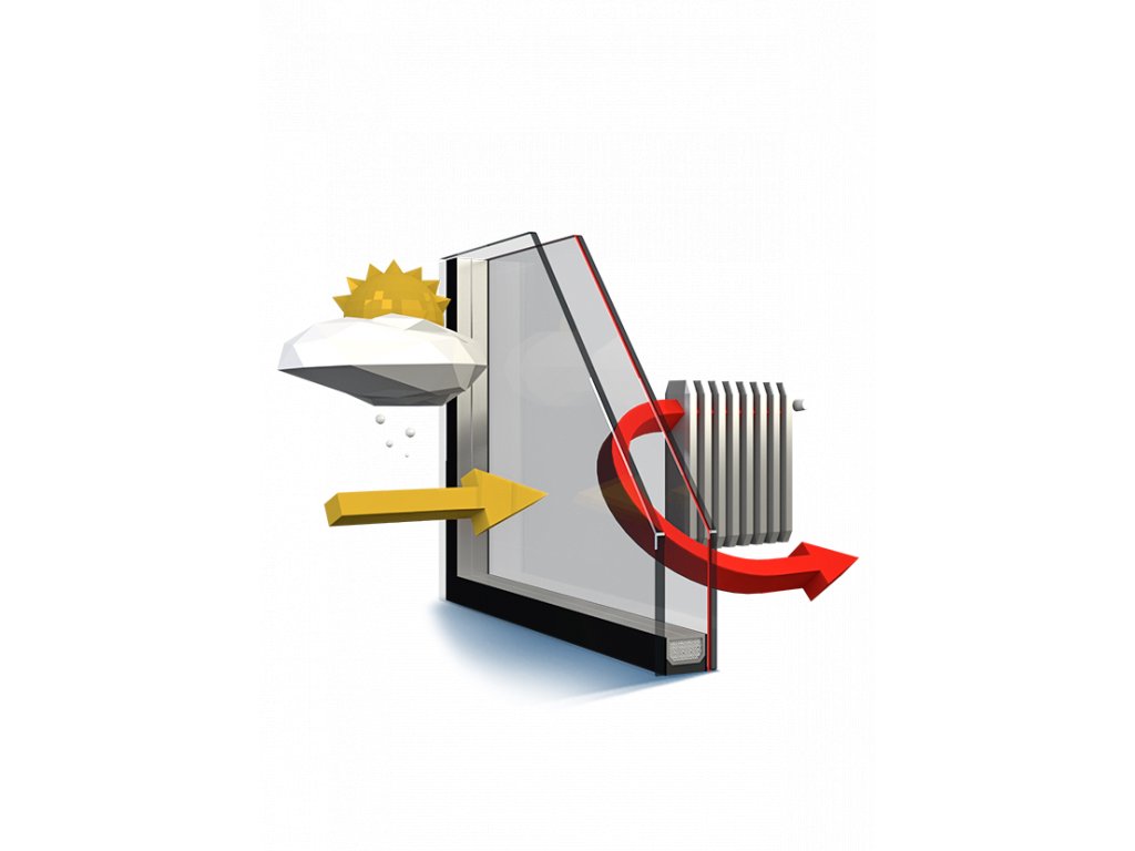 Zvýšený účinek izolace podporuje ještě pokovená vrstva vnitřního skla.