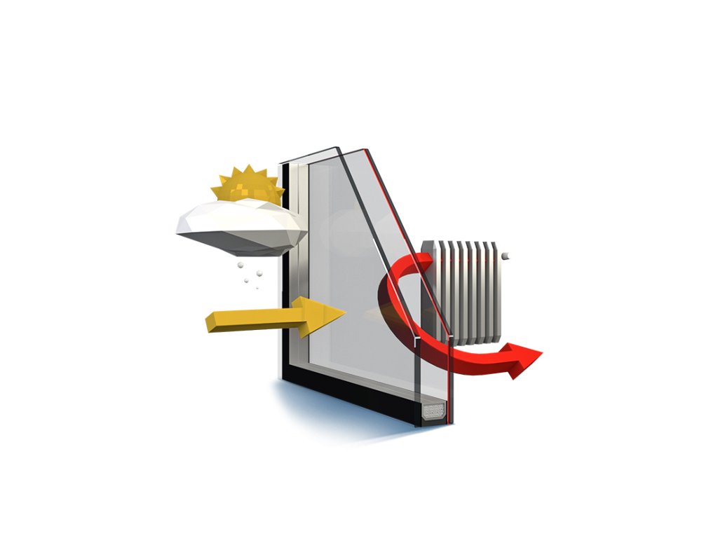 Této hodnoty se dosahuje vyplněním meziskelního prostoru směsí plynů. Izolační účinek podporuje pokovená vrstva vnitřního skla.